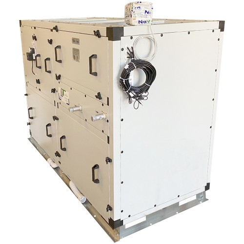 В состав установки входит: пластинчатый рекуператор для утилизации теплоты вытяжного воздуха; фильтры для очистки воздуха; вентиляторы c электронно-коммутируемыми высокоэффективными двигателями; нагреватель для подогрева приточного воздуха (электрический PTC или водяной); интегрированная система автоматики с дистанционным пультом управления; управление компрессорно-конденсаторным блоком (охладитель, комнатный датчик и реле защиты от обмерзания в состав установки не входит - поставляется отдельно); управление по WiFi со смартфона ОС Android. Дополнительные элементы и опции, поставляемые отдельно: воздушные заслонки; гибкие вставки; шумоглушители; охладитель; порошковая покраска.